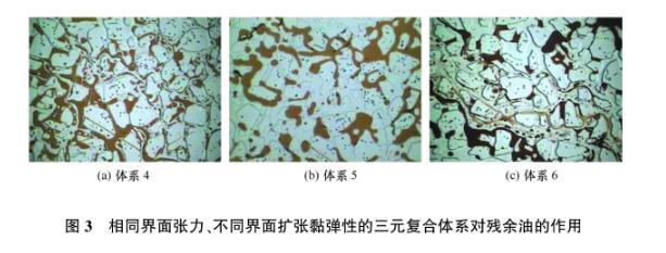 圖3相同界麵張力、不同界麵擴張黏彈性的三元複合體係對殘餘油的作用