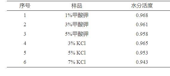 表2不同濃度KCl和甲酸鉀水活度