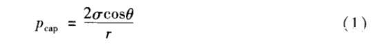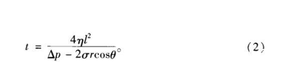 表示。式中,σ為表/界麵張力,r為孔隙平均半徑,θ為潤濕角。因此,對於特定的儲層,破膠液表/界麵張力越低且與岩石接近中性潤濕則返排能力越強。同時,根據Poiseulle方程,當返排壓差為Δp時,從半徑為r、長為l的毛細管中排出黏度為η、表/界麵張力為σ和接觸角為θ的液體所需時間
