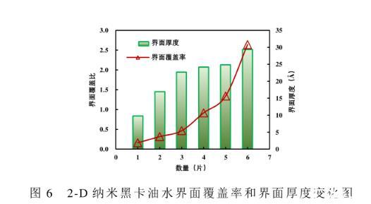 圖6 2-D納米黑卡油水界麵覆蓋率和界麵厚度變化圖