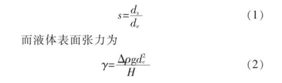 式(2)中為液體和空氣之間的密度差,g為重力加速度,而根據經驗公式和推導證明,認為S和1/H是反應液滴形狀的參數,可查表得到兩者的固定關係,根據此關係將S代入表麵張力計算,可以得到液體表麵張力。