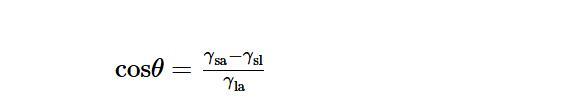 在由顆粒穩定的泡沫中,氣泡表麵存在不可逆吸附的顆粒層,可以起到抵抗聚結和粗化的物理屏障作用。顆粒必須首先吸附到表麵上才能實現穩定泡沫的功能。通常認為,顆粒在空氣/液體表麵的吸附與顆粒的潤濕性相關,該潤濕性通過顆粒與空氣/液體界麵的接觸角來量化,可由楊氏方程計算得到:
