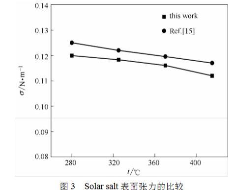 圖3 Solar salt表麵張力的比較