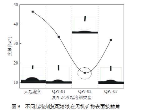 圖9不同起泡劑複配溶液在無機礦物表麵接觸角