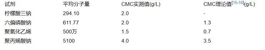 表1表麵活性劑的臨界膠束濃度CMC(26℃)