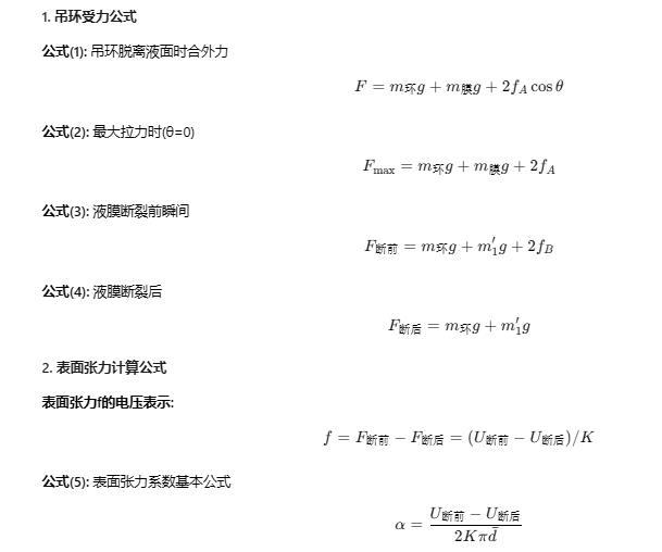 式中,m膜g為液膜重力,m環g為吊環重力,fA為表麵張力,由於液膜內、外表麵都存在fA,所以有係數2;θ是液麵與金屬吊環的接觸角。