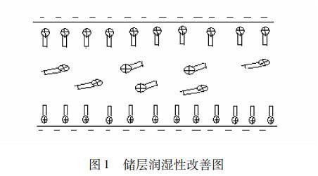砂岩的主要成分是矽酸鹽,其表麵帶有負電荷,親水能力很強,當帶有親水正電荷的表麵活性劑與其接觸時,使岩石變為親油,當表麵活性劑濃度較大時,又重新吸附到岩石表麵,再次使岩石變為親水。陽離子表麵活性劑通過正電荷與砂岩表麵相互作用,形成親油端朝外的疏水吸附層,使得進入孔隙的壓裂液聚集並脫離岩石表麵,起到提高返排率的作用(圖1)。